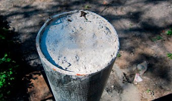 Полости после установки свай бетонируются подготовленной бетонной смесью.