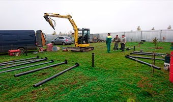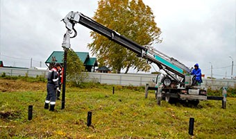 Два специалиста ставят до 80 элементов за один день при помощи сваекрута. Механизированный метод существенно сокращает сроки работ.
