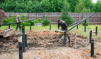 Комплект свай для свайно-винтового фундамента вкручивают вручную или при помощи спецтехники в размеченных местах.